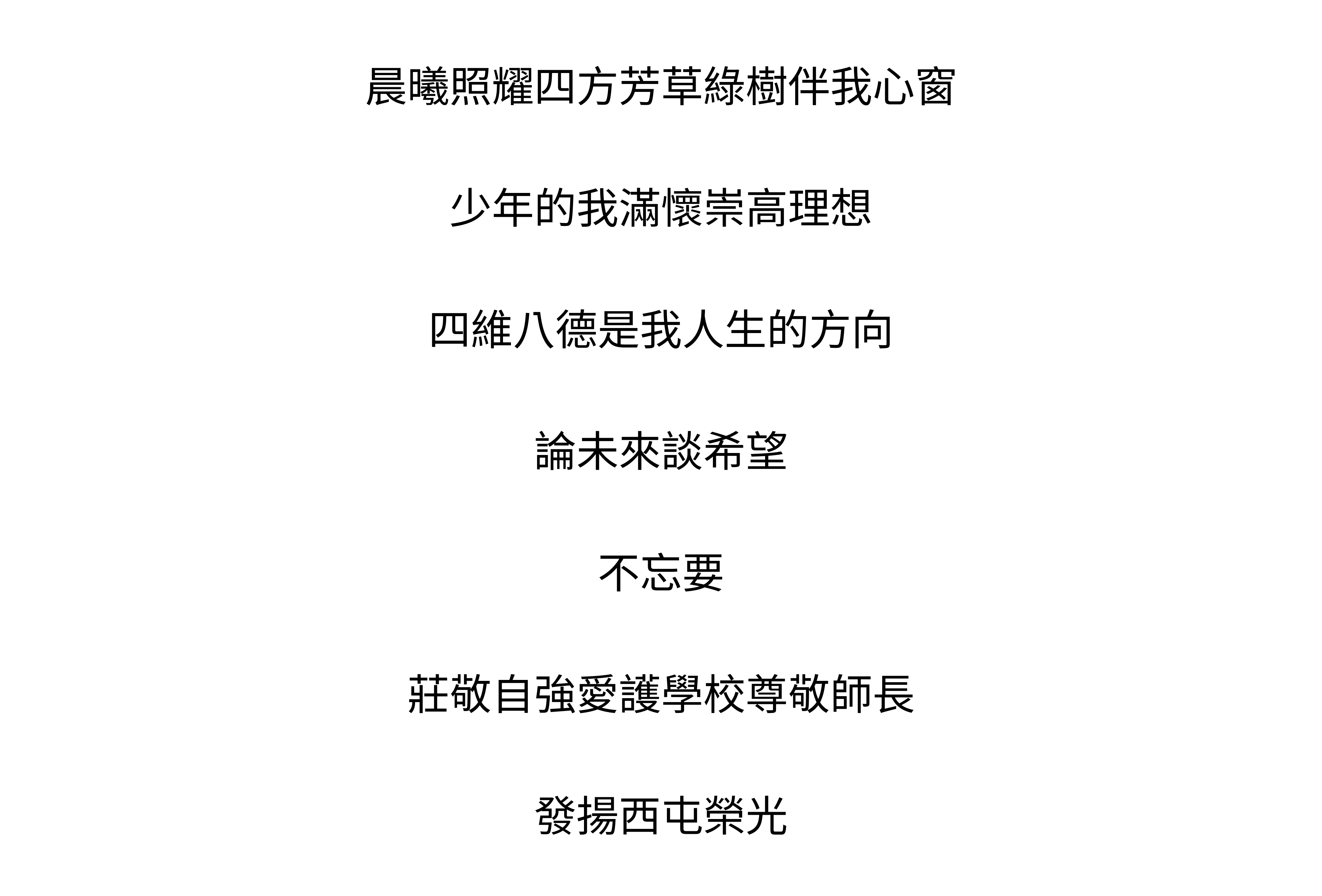 規劃跨領域主題課程及學習領域活化,將閱讀、美學、科技、國際本位融入課程,多元閱讀中獲得改變生活價值的美感。透過人文關懷與實踐體驗活動,涵養學生心性,俾利終身學習及生活美學的實踐。西屯校歌